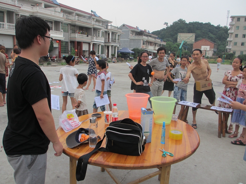 六点整,我们的实践团队列成一队,刚齐声宣布宣讲活动正式开始,村民们就迫不及待地领取了游戏参与条加入了问答游戏中。